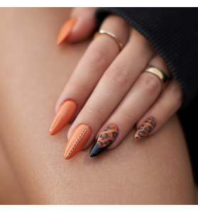 Manicure using Miss Hooligan from the Guilty! collection will give you positive energy and make autumn stay on your nails for good. The orange shade will look great both in smooth looks and in bold, saturated designs. Sounds interesting? Let’s do this!